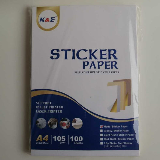 K&E MATTE STICKER PAPER A4 / 105GSM / 100 Sheets
