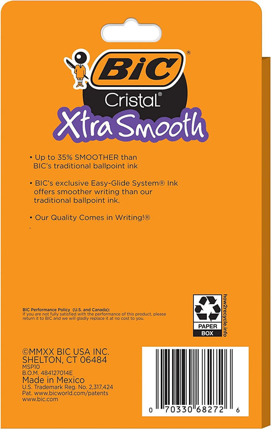 BIC Cristal Xtra Smooth Ballpoint Pen, Medium Point (1.0mm), Blue, 10-Count - USA