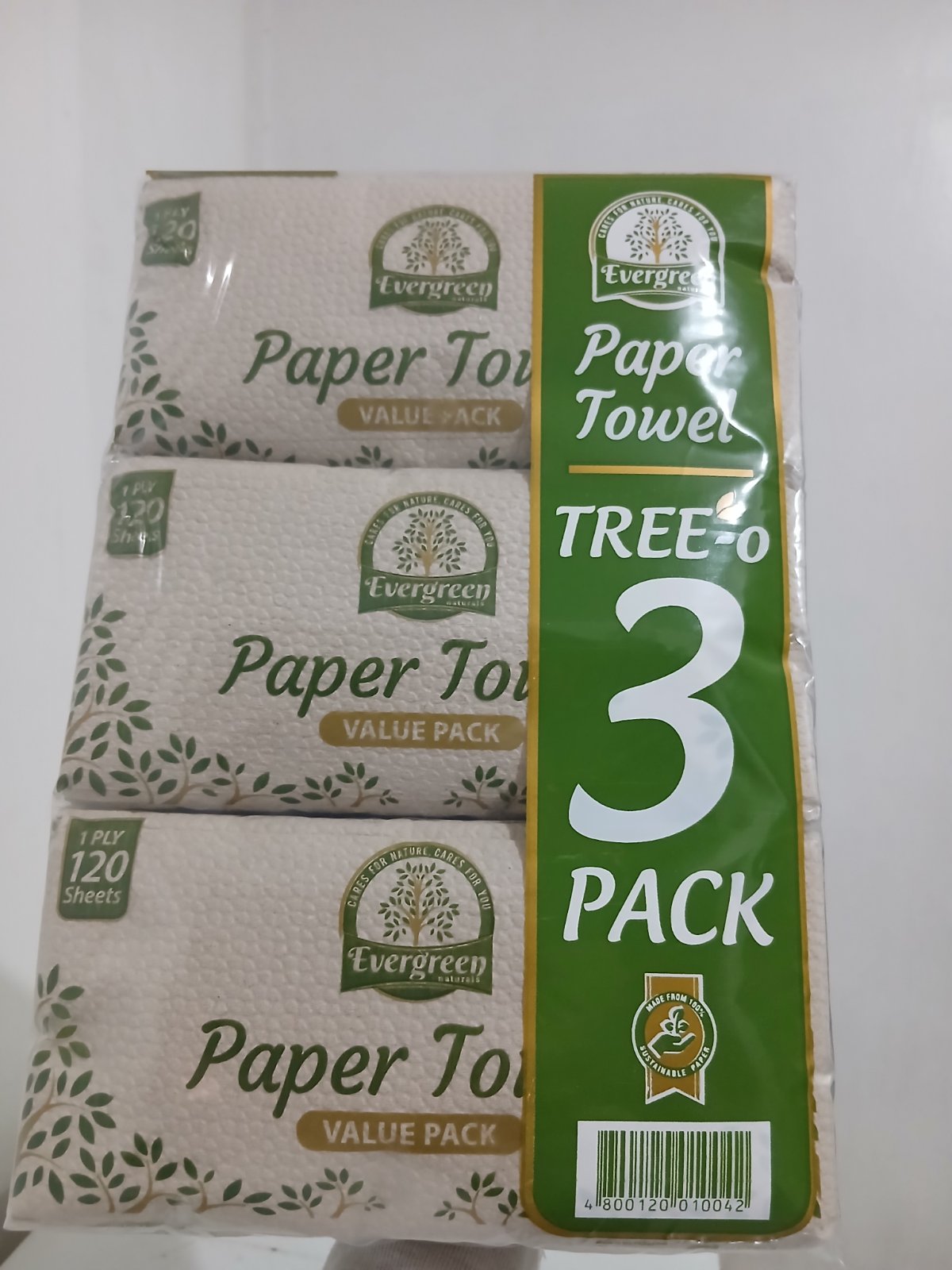 Evergreen Naturals Paper Towel 1 ply (trio pack) - PTBR 10/3/120 1 ply