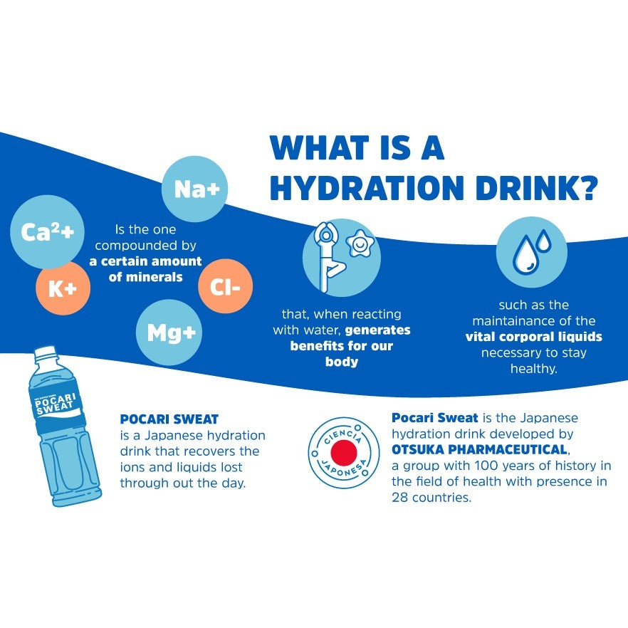 What is Pocari Sweat?POCARI SWEAT is a health drink that contains a balance of ions (electrolytes) which resembles the natural fluid balance in the human body. Quickly and easily replenishes the water and ions that your body needs, and quenches every part of you. Refreshing and mild tasting, recommended as a 'first aid' beverage for sports, exercise or any physical activities and various forms of mild dehydration.